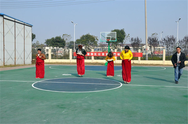 本次趣味運(yùn)動(dòng)會(huì)分團(tuán)體賽和個(gè)人賽兩部分。團(tuán)體賽包括拔河、摜蛋和齊心協(xié)力等3個(gè)項(xiàng)目,個(gè)人賽有玉兔蹦蹦跳、1分鐘跳小繩、夾乒乓球、自行車慢騎、托球跑、1分鐘定點(diǎn)投籃和踢毽子等7個(gè)項(xiàng)目,每個(gè)項(xiàng)目都融趣味性、競(jìng)爭(zhēng)性于一體。選手們?cè)谫悎?chǎng)上通力合作,你追我趕,展現(xiàn)出了高超的運(yùn)動(dòng)技巧和良好的團(tuán)隊(duì)精神,感受到了運(yùn)動(dòng)帶來(lái)的巨大樂(lè)趣。