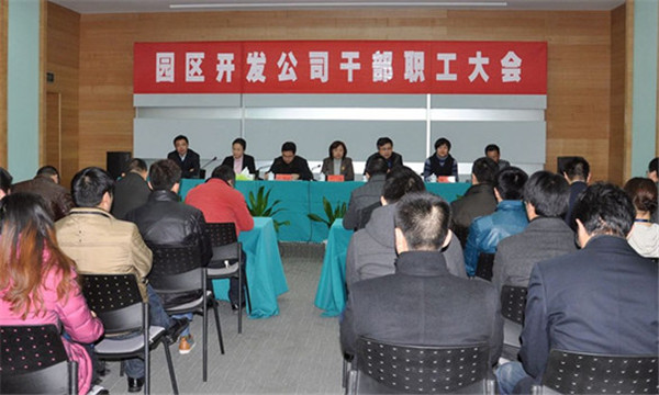 2月20日上午,園區(qū)開發(fā)公司召開干部職工大會(huì),歡送任職期滿的丁琦、吳穎同志,歡迎新任總裁陸志剛、財(cái)務(wù)總監(jiān)陶潔同志。公司常務(wù)副總裁鮑淮斌同志主持會(huì)議。