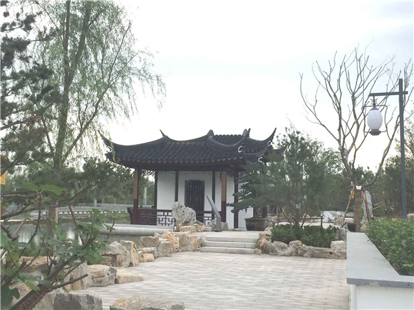 園區(qū)富民河北岸西段景觀綠化工程,位于富民河北岸(通湖大道至石公山路,石公山路至通達(dá)大道),總面積8024平方米,總投資約455萬元,整體風(fēng)格為蘇式風(fēng)格,借鑒蘇州園林元素,如滄浪亭、獅子林、拙政園和留園的園林特點,打造園區(qū)的“蘇式園林”。