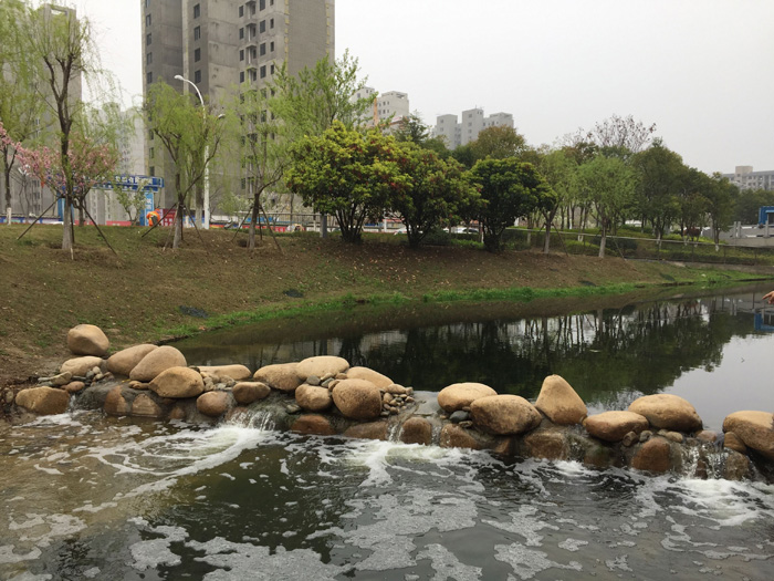 本工程造價(jià)約280萬元,主要對環(huán)形景觀帶進(jìn)行岸線規(guī)整、雨水口護(hù)砌、河道清淤,并種植沉水、挺水植物,設(shè)置景觀攔水壩及人工填料,改善河道水質(zhì),提升景觀效果。