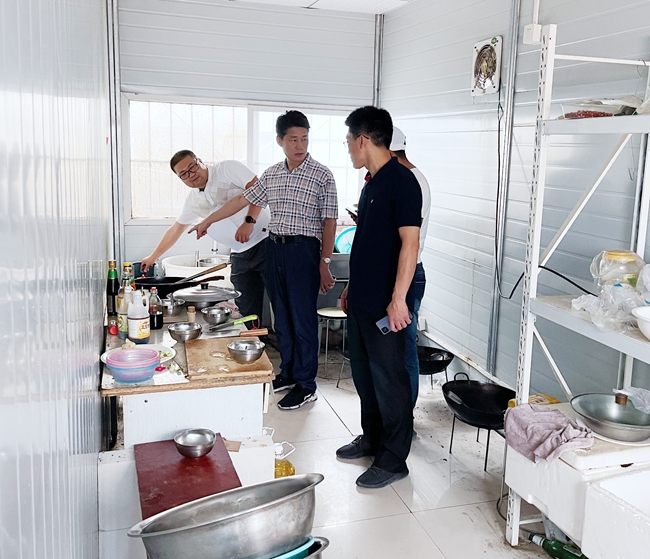 檢查組一行先后檢查了鏡泊湖路東延段、蘇宿園區(qū)消防站和棲霞山路污水提升工程等在建工程項(xiàng)目部。對(duì)廚房使用的鋼瓶、灶具以及配件等進(jìn)行詳細(xì)檢查,檢查組檢查發(fā)現(xiàn)存在個(gè)別鋼瓶過(guò)期、角閥漏氣以及軟管老化等安全隱患,現(xiàn)場(chǎng)責(zé)成責(zé)任單位立即進(jìn)行整改。