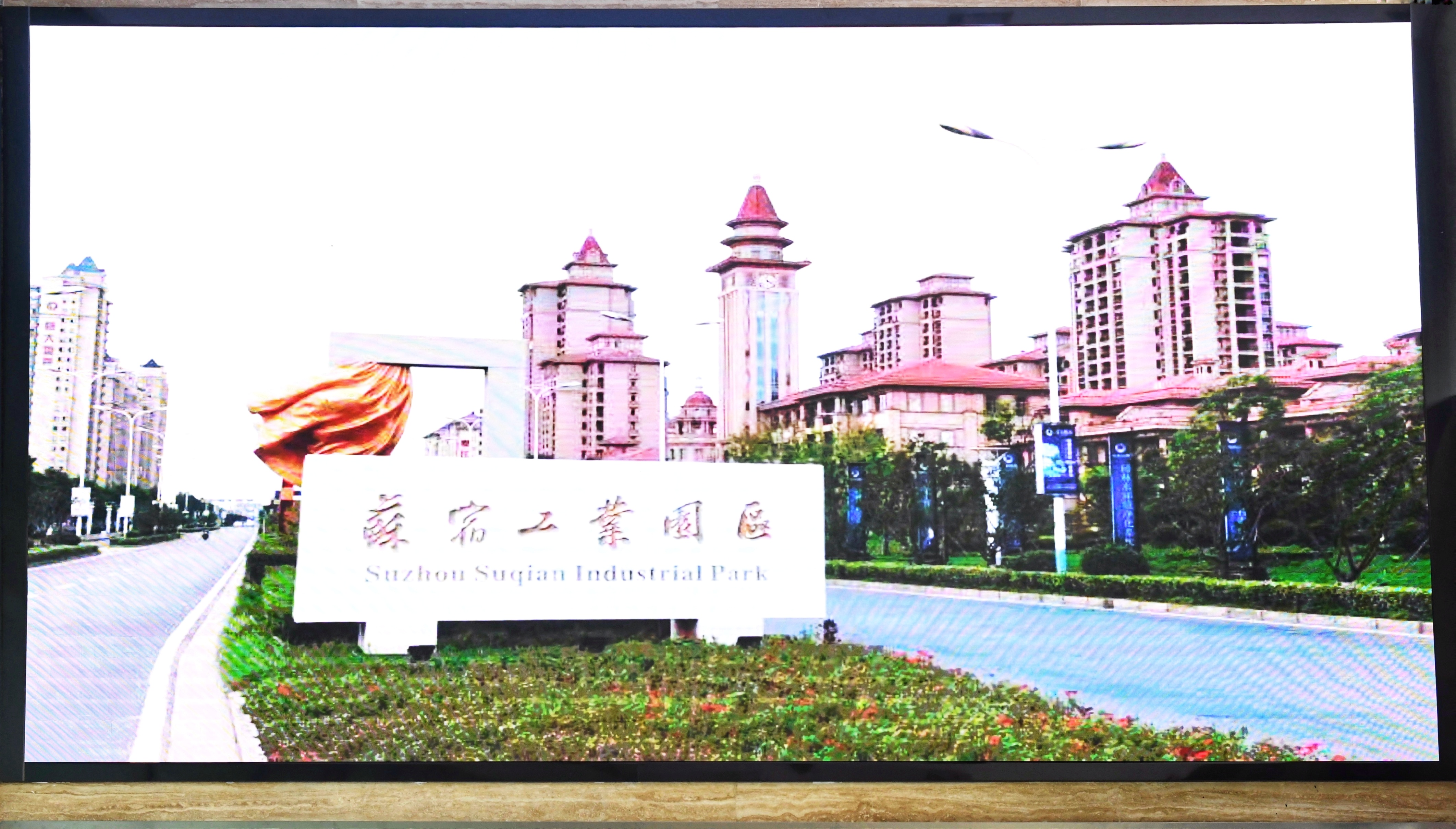 蘇宿管委會一樓大廳顯示屏約15平方米,像素點間距2mm,設(shè)置于大廳中部的二層挑高位置,是管委會對外宣傳的一個重要窗口,新大屏的投入使用,又將成為宣傳園區(qū)的一個新的“助推器”。