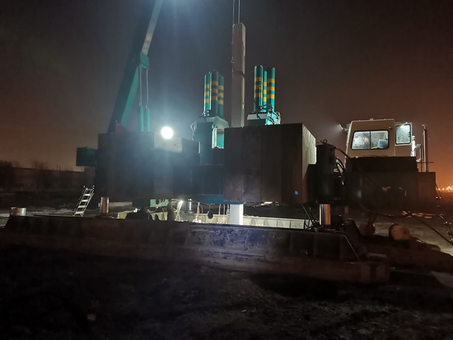 項目于2021年12月正式開工建設(shè),總樁長約4.7萬米。樁基工程是整個項目起步的關(guān)鍵工程,項目各參建單位緊密配合,面對時間緊、任務(wù)重、氣溫低、管控嚴(yán)等重重困難,施工不分晝夜,雨天依然堅持施工,最終確保了進(jìn)度計劃的實現(xiàn)。