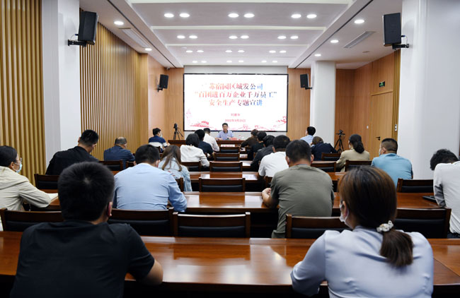 為深入習(xí)近平總書記關(guān)于安全生產(chǎn)的重要論述和指示批示精神、安全生產(chǎn)“十五條”硬措施、新《安全生產(chǎn)法》以及安全生產(chǎn)大檢查、重點(diǎn)行業(yè)領(lǐng)域安全生產(chǎn)百日攻堅(jiān)行動(dòng),認(rèn)真落實(shí)全省“百團(tuán)進(jìn)百萬企業(yè)千萬員工”安全生產(chǎn)宣講活動(dòng)的安排部署。9月23日下午,宿遷市蘇宿工業(yè)園區(qū)城市發(fā)展投資有限公司董事長劉建華作安全生產(chǎn)專題宣講。