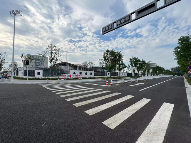本次工程累計(jì)安裝隔離護(hù)欄1236米,警示柱12套,震蕩標(biāo)線713平米,夜間自發(fā)光三角警示牌19套,停車場指示牌2套,可拆卸防撞柱10套,臨時封閉移動護(hù)欄100m。