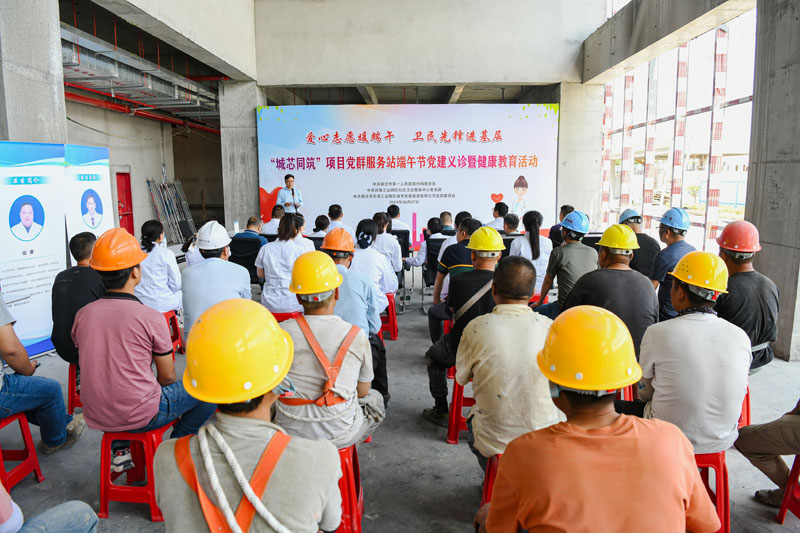為進一步弘揚中華民族傳統(tǒng)文化,關(guān)心關(guān)愛園區(qū)一線職工,不斷深化黨建合作,打造“城芯同筑”黨建品牌, 6月7日下午,在這個充滿濃厚傳統(tǒng)文化氣息的節(jié)日里,“城芯同筑”項目黨群服務(wù)站邀請宿遷市第一人民醫(yī)院和蘇宿園區(qū)社區(qū)衛(wèi)生服務(wù)中心的醫(yī)療專家團隊為智慧信息產(chǎn)業(yè)園項目建設(shè)者開展便民義診和健康講座活動。