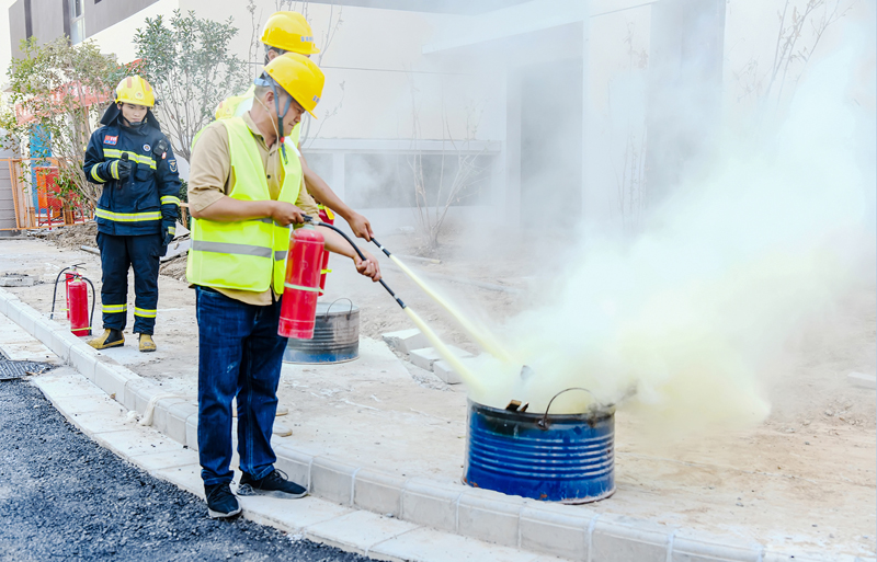 演練結(jié)束,園區(qū)消防救援大隊(duì)對(duì)火災(zāi)應(yīng)急疏散過程中存在的問題進(jìn)行一一點(diǎn)評(píng),演示了滅火器的使用方法,為現(xiàn)場(chǎng)工人科普了消防知識(shí),邀請(qǐng)現(xiàn)場(chǎng)人員參與滅火體驗(yàn)。