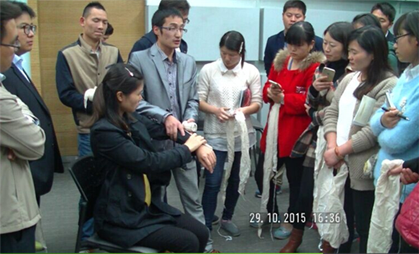 理論課上,講師們詳細(xì)生動地介紹了應(yīng)急救護(hù)的基本知識,講述止血、包扎、固定和搬運(yùn)等四方面內(nèi)容。實訓(xùn)課上,參訓(xùn)者饒有興致地進(jìn)行一對一實際操作,講師們現(xiàn)場進(jìn)行指點(diǎn)。