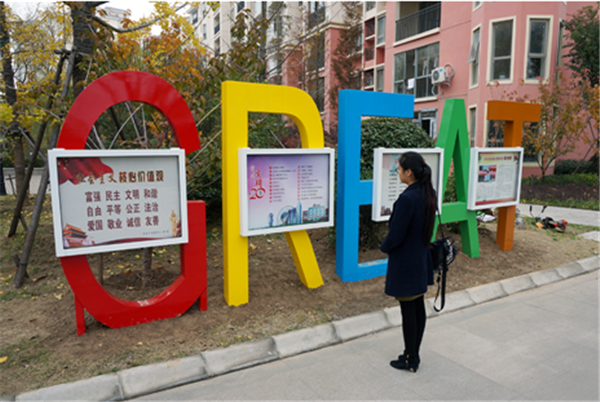 紅黃藍綠橙,多彩的字母組成英文單詞“GREAT”,中間鑲嵌四個方形宣傳框,今年社區(qū)在明日星城和恒大綠洲小區(qū)試點放置兩個宣傳欄。居民看著社區(qū)移走小區(qū)大門口的多個移動立牌,放置這樣的宣傳欄紛紛點贊。這次設立“GREAT”立體廣告牌,不僅美化了小區(qū)環(huán)境,走起了國際范,還有著特殊的意義,“GREAT”具有美好向上的意思,社區(qū)希望提倡積極生活、追求美好的社區(qū)文化。