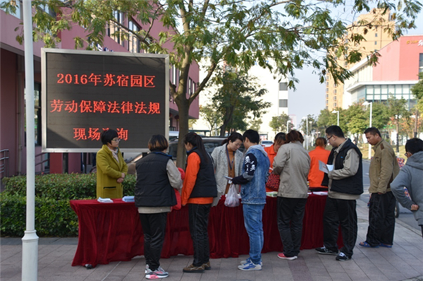 為進(jìn)一步優(yōu)化園區(qū)用工環(huán)境,引導(dǎo)職工理性維權(quán),11月11日上午,園區(qū)勞動部門選擇了在企業(yè)員工集聚區(qū)——園區(qū)公舍開展勞動保障法律法規(guī)現(xiàn)場咨詢活動,通過發(fā)放宣傳資料,面對面答疑解惑等方式普及勞動保障相關(guān)知識。